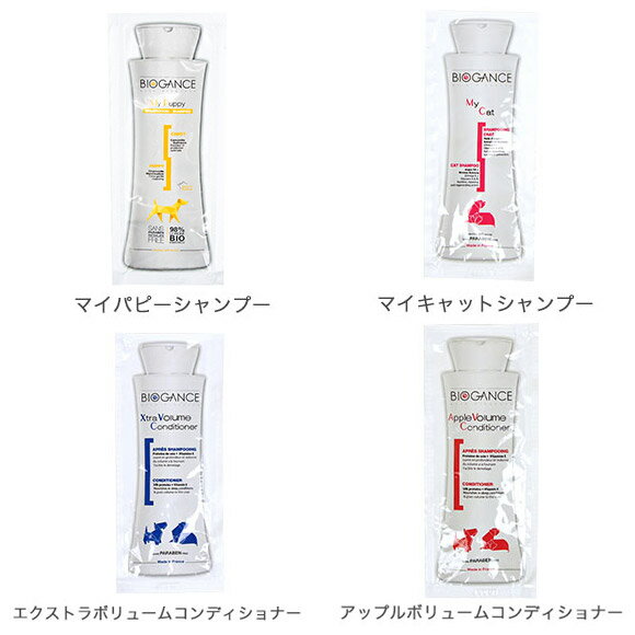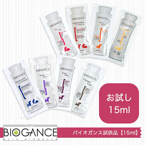 【犬 シャンプー リンス】【犬用シャンプー トリートメント コンディショナー ケア用品 抜け毛 消臭】【i dog 楽天】【犬 シャンプー】バイオガンス BIOGANCE サンプル15ml【ケア用品】 プロテインプラスシャンプー/ホワイトスノーシャンプー/タウニーアプリコットシャンプー/ロングコートシャンプー マイパピーシャンプー/マイキャットシャンプー/エクストラボリュームコンディショナー/アップルボリュームコンディショナー 毛色・毛質に合わせて使い分けるこだわり仕上げを実現。