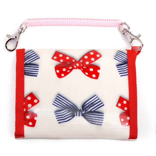 キッズウォレット(財布) チェーン付き ポルカドットとストライプのフレンチリボン(アイボリー) (お財布 キッズ 子供 財布 女の子 小学生 キッズウォレット チェーン コインケース こども 紐付き 中学生 子ども リボン)