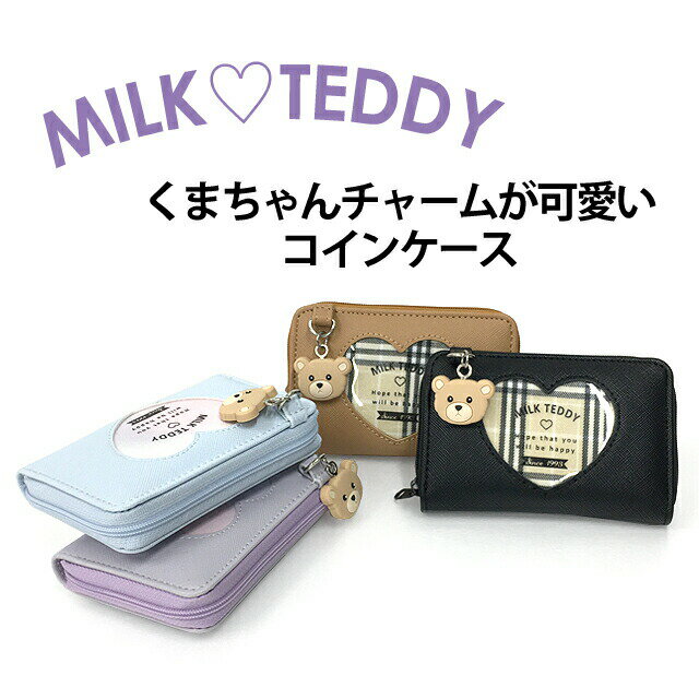 (キッズ 財布 女の子)(財布 小学生)(財布 女の子 小学生)(キッズ コインケース)商品情報 【wpq-107】MILK TEDDY(ミルクテディ) ベアハートシリーズ コインケース 素 材|角シボ合皮 サイズ |約 横11.5×縦8×マチ2cm 重 量|約 60g 仕 様|メイン3ルーム仕様 イメージ|かわいい おしゃれ ガーリー チェック くま ベア チャーム 小銭入れ コインケース コインパース ブラック パープル ライトブルー キャメル 黒 紫 茶 水色 ご注意 ※記載しておりますサイズ・重量は測定方法により若干異なる場合があります。